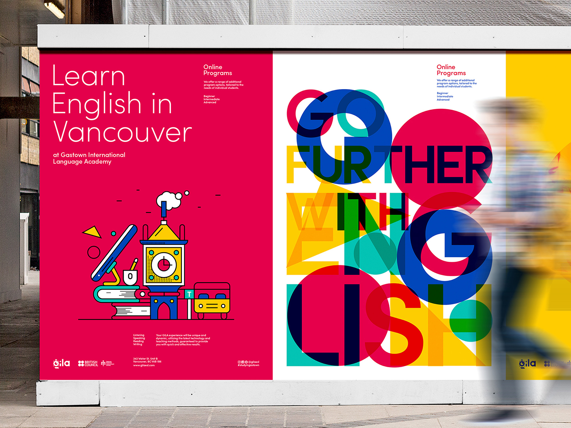 學(xué)校標(biāo)志設(shè)計(jì)的靈感來自蓋斯鎮(zhèn)最著名的地標(biāo)——蒸汽動(dòng)力時(shí)鐘。同時(shí)還實(shí)施了 Gastown 最初的“G”和一些代表學(xué)院提供的創(chuàng)新學(xué)習(xí)風(fēng)格的形狀。所選擇的顏色描繪了現(xiàn)代 ESL 學(xué)校提供優(yōu)質(zhì)教育服務(wù)的不同語言和文化群體的想法。