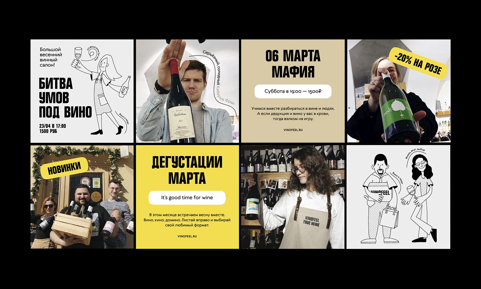品牌設(shè)計(jì)的特點(diǎn)是俏皮而充滿活力。它通過(guò)排版、有趣的線條和短語(yǔ)來(lái)展示。并且還通過(guò)語(yǔ)氣。Vinofeel 總是樂(lè)于與觀眾對(duì)話。